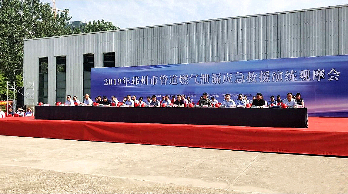 為深入貫徹落實《安全生產(chǎn)法》以及省市關(guān)于加強應(yīng)急救援預(yù)案演練的有關(guān)文件精神,建立和完善應(yīng)對燃?xì)庑袠I(yè)突發(fā)事件的處置能力,鍛煉燃?xì)馄髽I(yè)應(yīng)急救援隊伍,2019年7月2日,由邳州市住房和城鄉(xiāng)建設(shè)局主辦、徐州奧德燃?xì)夤境修k、邳州市消防救援大隊、邳州市120急救中心、徐州天鴻集團及江蘇巴倫新材料科技有限公司協(xié)辦的2019年管道燃?xì)庑孤?yīng)急救援演練活動在江蘇巴倫新材廠區(qū)舉行。徐州住建局、邳州市委市政府、各鎮(zhèn)、街道辦事處、經(jīng)濟開發(fā)區(qū)、高新區(qū)管委會分管安全生產(chǎn)負(fù)責(zé)人,武裝部、市衛(wèi)計委、市應(yīng)急管理局、高新區(qū)、住建局、徐州奧德燃?xì)夤?、徐州天鴻集團及江蘇巴倫新材料科技有限公司相關(guān)領(lǐng)導(dǎo)共計120余人參加。