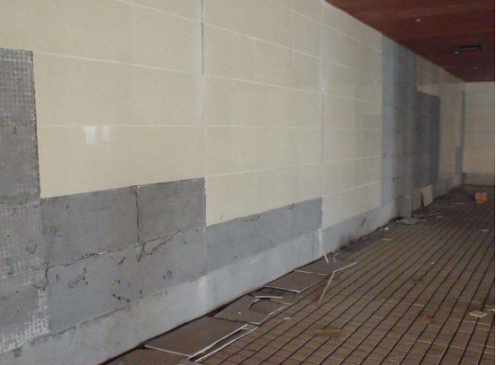 基層強(qiáng)度低、有油污會(huì)直接影響到瓷磚粘結(jié)劑的粘結(jié)力,導(dǎo)致空鼓掉磚;墻面不結(jié)實(shí),則基面容易脫層掉落;墻面不平整,缺陷太大瓷磚與墻面的接觸不到位,容易造成空鼓;